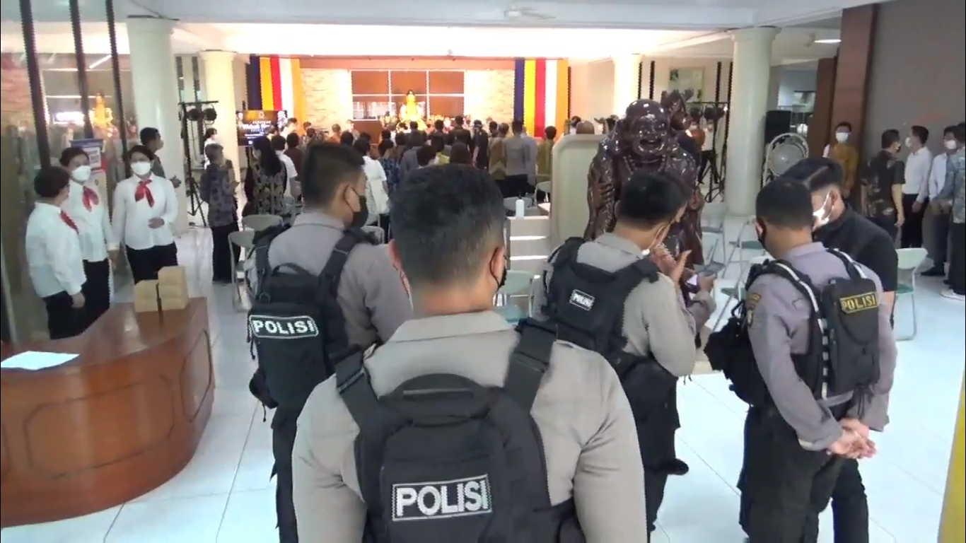 ‘’Kami mencoba melakukan kegiatan monitoring dan pengecekan khususnya anggota-anggota kami personel Polres Metro Jakbar dengan didukung 3 pilar ada dari TNI, Satpol PP untuk melakukan pengamanan-pengamanan di wihara-wihara," kata Pasma Royce di sela memantau ibadah di Pusdiklat Buddhis Maitreyawira, Jelambar, Jakarta Barat.