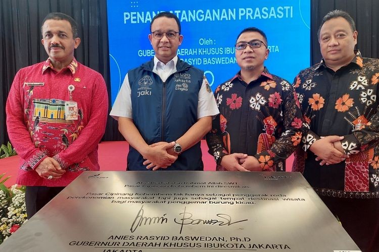 Gubernur DKI Jakarta Anies Rasyid Baswedan dan Direktur Utama Perumda Pasar Jaya Tri Prasetyo meresmikan empat pasar dengan penampilan baru pada Kamis (22/9/2022).