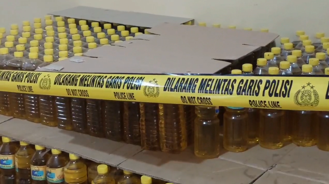 “Polisi menyita seribu 300 botol minyak goreng dengan merk Laban. 100 plastik promo minyak goreng curah yang dilengkapi dengan sabun detergen merk Total dan 530 bal botol kosong ukuran 1 liter. Masing-masing bal berisi 60 botol” Ungkapnya.