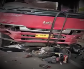 Selain itu, ada tiga unit sepeda motor yang ditabrak dalam kecelakaan tersebut. Ketiga sepeda motor itu tampak dalam keadaan rusak parah.