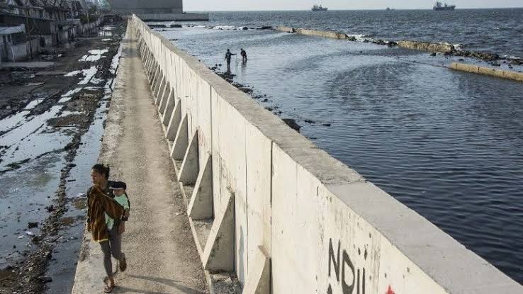 "Tanggul Laut Raksasa Jakarta atau The Great Sea Wall of Jakarta. Tembok di Jakarta yang memisahkan air laut dan daratan supaya tidak tenggelam," kata akun tersebut dikutip pada Rabu (4/10/2023).